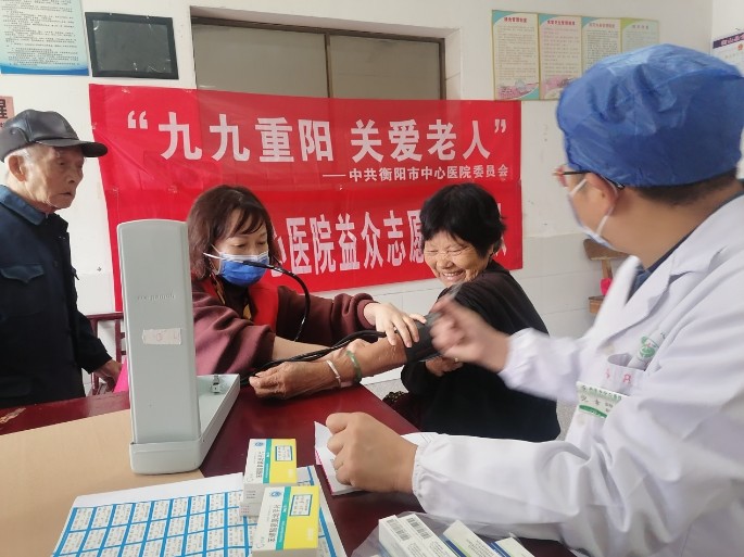 益眾志愿者開展關(guān)愛老人活動(dòng) 發(fā)布時(shí)間:2021年10月15日 15:42:43 預(yù)覽:3911次 通訊員殷君發(fā)報(bào)道:10月15日,衡陽(yáng)市中心醫(yī)院益眾志愿者服務(wù)隊(duì)牽頭,聯(lián)合機(jī)關(guān)一、四支部,門診醫(yī)技一、二、三支部,華新一支部,外科三支部等黨支部黨員,走進(jìn)衡山縣開云鎮(zhèn)敬老院,開展“九九重陽(yáng),關(guān)愛老人”活動(dòng)。志愿者服務(wù)隊(duì)和黨員為開云鎮(zhèn)敬老院29名老人送上牛奶、麥片等營(yíng)養(yǎng)品,開展測(cè)血壓、血糖等醫(yī)療服務(wù),免費(fèi)發(fā)放降壓藥等藥品,給予老年人服藥指導(dǎo)和健康教育。