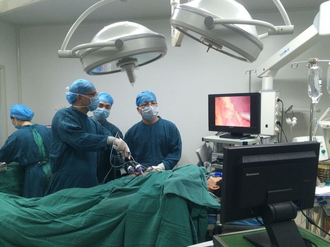 對于多原發(fā)癌的治療,目前仍采用手術(shù)為主,化放療相結(jié)合的綜合治療手段。此類患者,若采取傳統(tǒng)開腹手術(shù),手術(shù)創(chuàng)面將波及整個腹部,腹部將會遺留至少長約20cm手術(shù)疤痕,術(shù)后恢復(fù)慢,住院時間長,腫瘤種植復(fù)發(fā)、切口裂開、切口疝的概率將大大增加。而采用腹腔鏡手術(shù),患者完全不用擔(dān)心腫瘤切不干凈,因為腹腔鏡手術(shù)視野將放大6倍,不但能將腫瘤完整切除,更能將細(xì)小的癌灶及淋巴結(jié)完整清除,同時減少了腹部創(chuàng)傷,腹部也僅僅會遺留一長約5cm手術(shù)疤痕,但腹腔鏡手術(shù)要求高,技術(shù)難度大,國內(nèi)外腹腔鏡下胃結(jié)腸同發(fā)癌一期根治較少,而衡陽市尚未有類似報道。