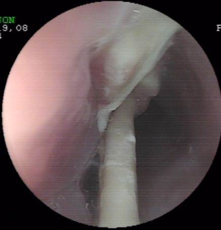 上個(gè)月末,一誤食異物(雞骨)胸骨后疼痛4天的患者經(jīng)胃鏡檢查確診為食管異物嵌頓。因患者異物嵌頓時(shí)間長(zhǎng),且患者其間還采取了其它一些清除異物的方法,造成異物的兩端均刺入食管壁,刺入處食管粘膜糜爛,充血,腫脹。按常規(guī),該患者應(yīng)收治外科行開胸手術(shù)取出術(shù),但患者家境貧寒,且為家里主要?jiǎng)诹?,無(wú)法承受醫(yī)療費(fèi)用及開胸術(shù)后所造成暫時(shí)的勞動(dòng)能力降低的損失。為減輕患者經(jīng)濟(jì)負(fù)擔(dān)及痛苦,在確診食管異物尚未造成食管周圍重要臟器損傷的情況下,該室決定在胃鏡下試取,經(jīng)多方面嘗試,最終成功將一長(zhǎng)約3.6cm兩端鋒利的雞骨(圖示)行內(nèi)鏡下取出,術(shù)后患者康復(fù)好,真正做到了微創(chuàng)手術(shù)解除患者大問(wèn)題,減輕了患者經(jīng)濟(jì)及軀體負(fù)擔(dān)。