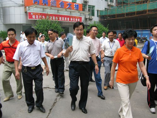 省衛(wèi)生廳廳長(zhǎng)張健來我院調(diào)研 發(fā)布時(shí)間:2008年8月27日 預(yù)覽:4500次 8月27日,省衛(wèi)生廳廳長(zhǎng)張健來我院開展工作調(diào)研活動(dòng),副市長(zhǎng)許滿意、市衛(wèi)生局局長(zhǎng)趙安民等相關(guān)領(lǐng)導(dǎo)陪同調(diào)研。 調(diào)研行程中,我院院長(zhǎng)、黨委書記申錦林就醫(yī)院為民辦實(shí)事、人才隊(duì)伍建設(shè)及醫(yī)療設(shè)備裝備等情況向張健作了詳細(xì)匯報(bào),張健對(duì)我院近年來在內(nèi)部管理、人才引進(jìn)、基本建設(shè)、醫(yī)院規(guī)劃等方面所做的大量工作給予了充分肯定,對(duì)醫(yī)院綜合實(shí)力的明顯提高表示滿意。隨后,調(diào)研組一行還饒有興致地參觀了我院即將投入使用的門診綜合大樓。(鄒建軍)