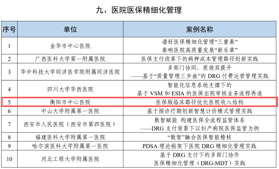 大眾衛(wèi)生報(bào)·新湖南客戶(hù)端9月30日訊(通訊員 聞杰)近日,國(guó)家衛(wèi)生健康委能力建設(shè)和繼續(xù)教育中心正式公布了“2024年度中國(guó)現(xiàn)代醫(yī)院管理典型案例”評(píng)選結(jié)果。衡陽(yáng)市中心醫(yī)院申報(bào)的醫(yī)院醫(yī)保精細(xì)化管理案例——《醫(yī)保版臨床路徑優(yōu)化醫(yī)院收入結(jié)構(gòu)》,從全國(guó)眾多優(yōu)秀案例中脫穎而出,成功獲評(píng)“典型案例”稱(chēng)號(hào)。