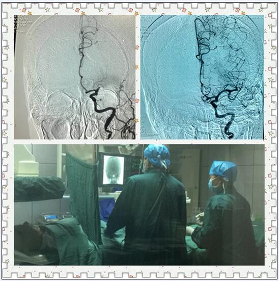 該患者因突發(fā)右側(cè)肢體無(wú)力80分鐘于5月11日8:25入神經(jīng)內(nèi)科,當(dāng)時(shí)病人神志嗜睡,右側(cè)肢體肌肉無(wú)收縮,肌力0級(jí)。入院后,醫(yī)院立即啟動(dòng)卒中綠色通道,23分鐘內(nèi)完成了CT檢查,排除腦出血,病人處于時(shí)間窗內(nèi),完善相關(guān)檢查后,馬上以阿替普酶進(jìn)行靜脈溶栓,但靜脈溶栓結(jié)束后,患者癥狀無(wú)明顯改善。經(jīng)家屬同意于11:20進(jìn)入導(dǎo)管室,馬上準(zhǔn)備行腦動(dòng)脈造影+血管內(nèi)治療,術(shù)中發(fā)現(xiàn)患者血管路徑迂曲并多處串聯(lián)狹窄,立即改用動(dòng)脈溶栓術(shù)。置鞘成功至病變血管開(kāi)通共約80分鐘。術(shù)后1小時(shí)查,病人神志清楚,右側(cè)肢體可以抬離床面,并可抵抗部分阻力,肌力4級(jí)。