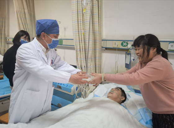 在病房床頭,醫(yī)務(wù)人員仔細(xì)地詢問了患者的身體狀況并送上節(jié)日的祝福,將寄托濃濃“愛心”的湯圓送到病患和家屬們的手上。